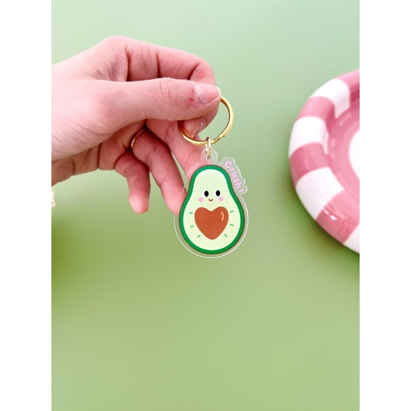 Avec sa forme d’avocat et son noyau en forme de coeur, ce porte-clés joue avec humour sur le mot "Crush!". Un petit clin d’oeil gourmand qui transforme un simple accessoire en véritable déclaration. Son design expressif et ses couleurs lumineuses en font un objet à la fois amusant et attachant. L’avocat est devenu un incontournable des petits déjeuners et des brunchs modernes. Ce porte-clés s’inspire de cet univers gourmand pour apporter une touche joyeuse à votre quotidien.