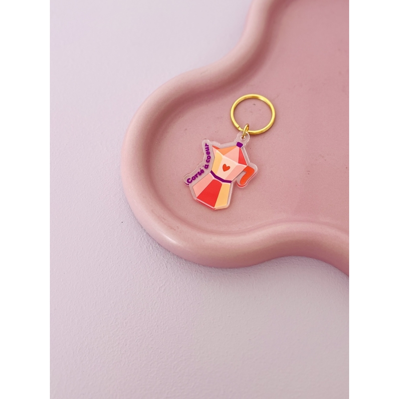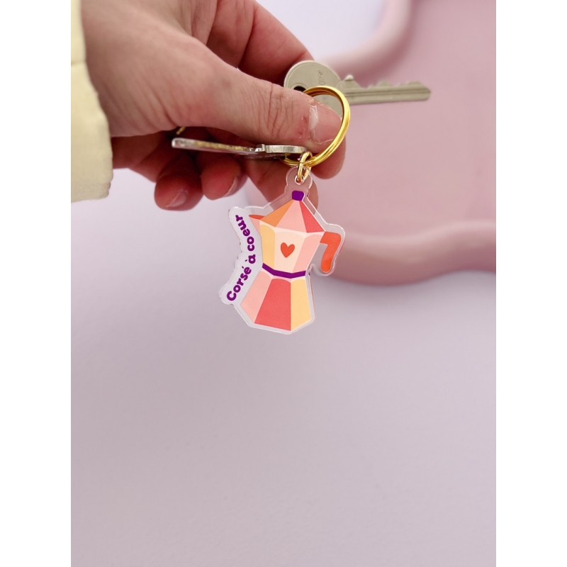 Inspiré de la mythique cafetière italienne, ce porte-clés coloré rend hommage au rituel du café du matin. Son message "Corsé à coeur" évoque un café intense, mais aussi une personnalité affirmée. Un accessoire parfait pour celles et ceux qui ne commencent jamais leur journée sans leur espresso !