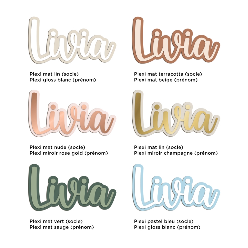 La commande comprend la personnalisation du prénom, ainsi que sa réalisation et son assemblage dans les matières choisies.