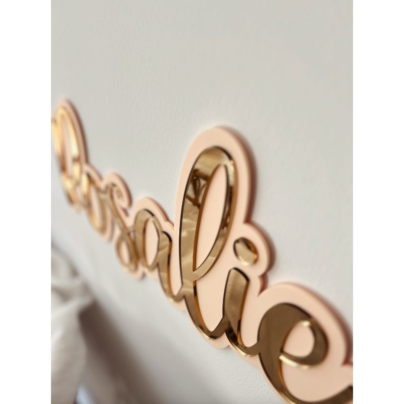 Décorez la chambre de votre enfant avec originalité et style grâce à cette enseigne bi-matières. Nous vous proposons de pouvoir faire votre décoration murale sur-mesure en vous laissant choisir la matière pour le socle et pour le lettrage. Ainsi, vous aurez un résultat qui correspond à 100% à vos envies et à la décoration existante.