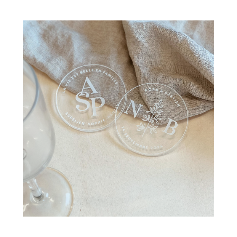 Personnalisez des dessous de verre en bois ou en plexiglas à votre image. Ce modèle vous plaira pour son brin de laurier qui met parfaitement en valeur vos initiales. Que ce soit pour un mariage, pour la Saint-Valentin ou sans événement particulier, vous allez adorer ce produit original et unique !